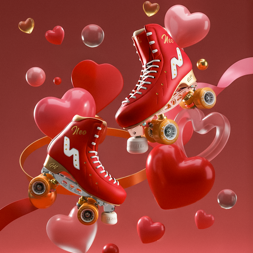Celebrate the season of love with Neo Roller Skates: Limited Color Edition "True Love Red" featuring an affordable elite aluminium plate "Oulen-X". In Special Price