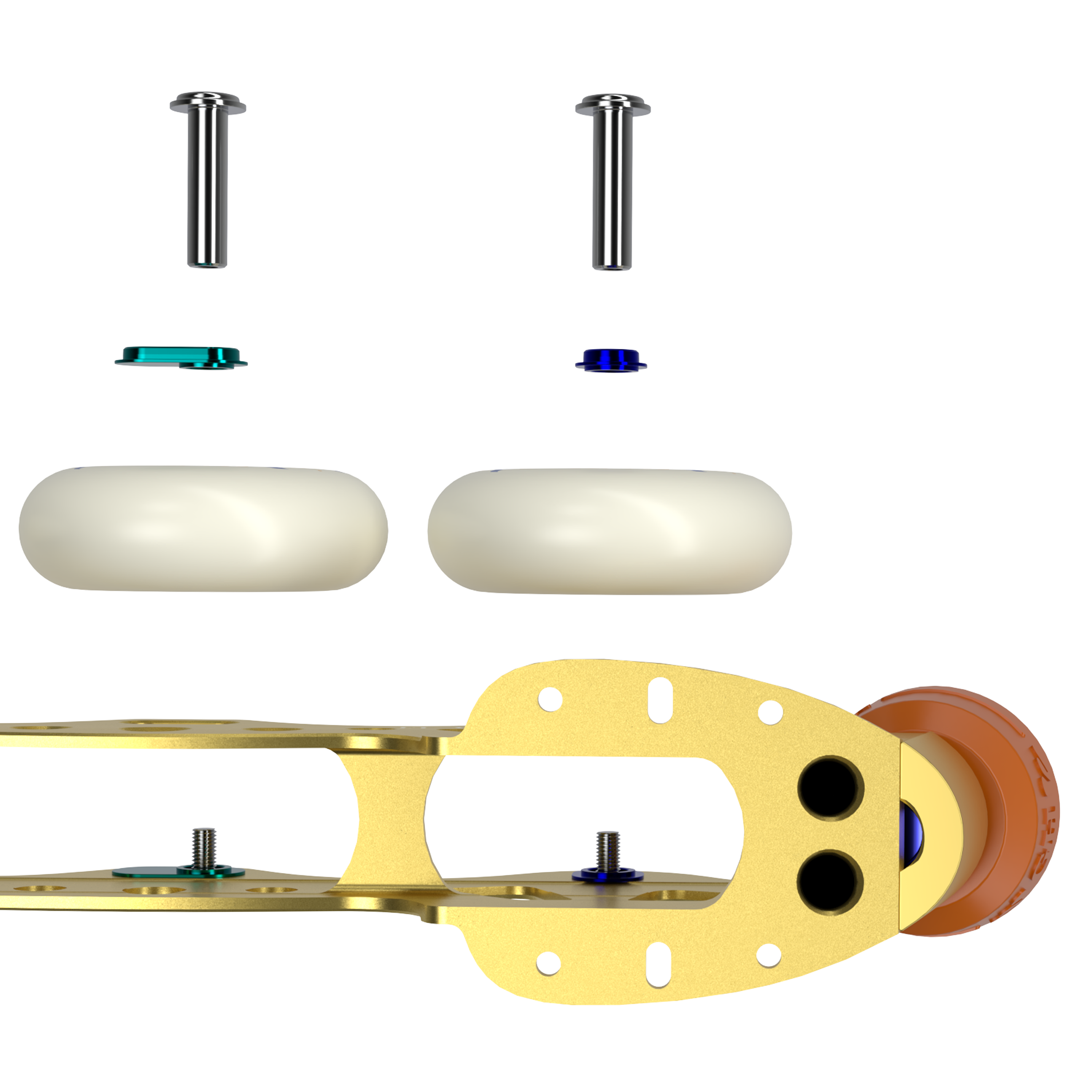 - Titanium Axles: Light but strong. The wheel shaft is made of high-quality titanium to confidently support the impact of high-level jumping moves. It is capable of supporting jumps as high as triple jumps.