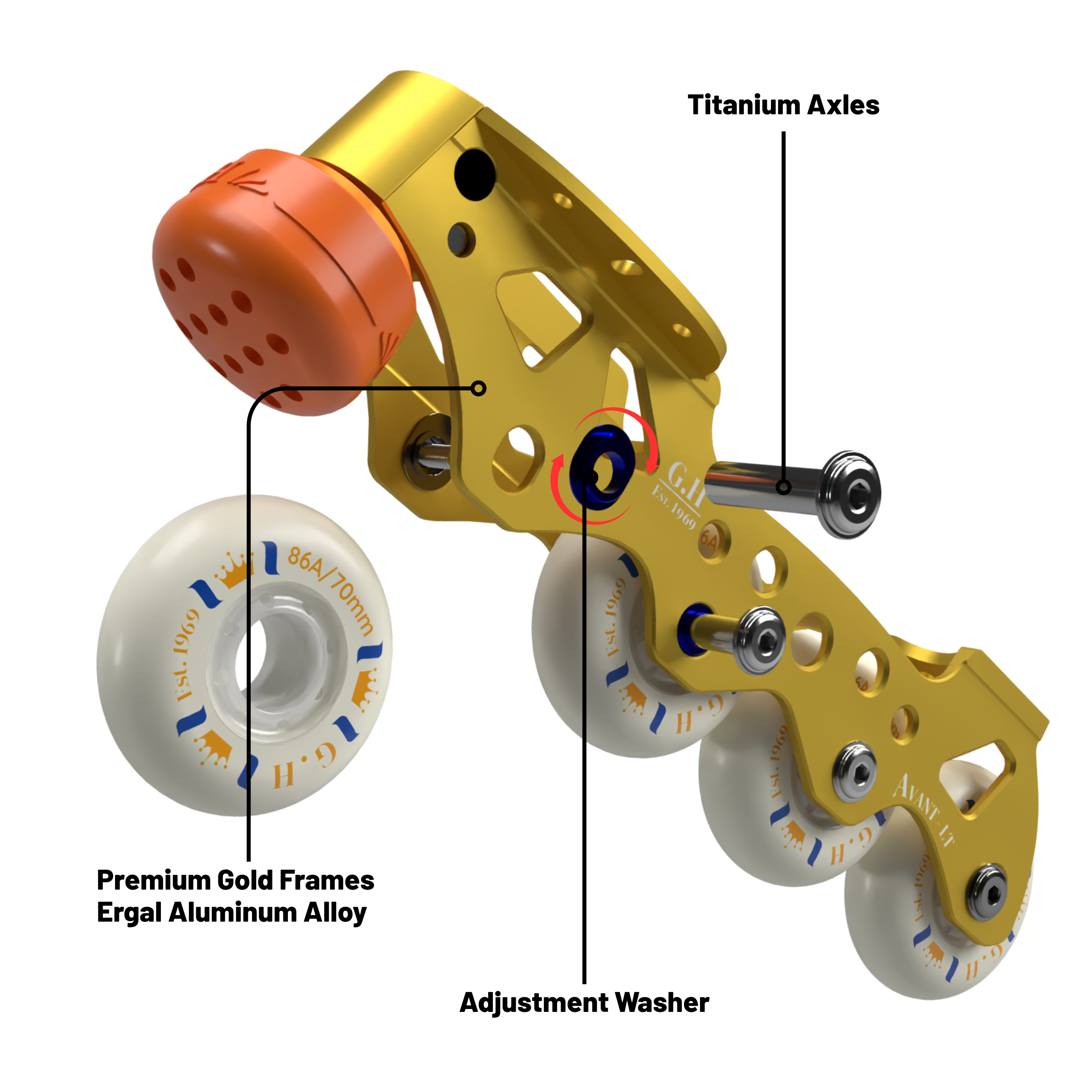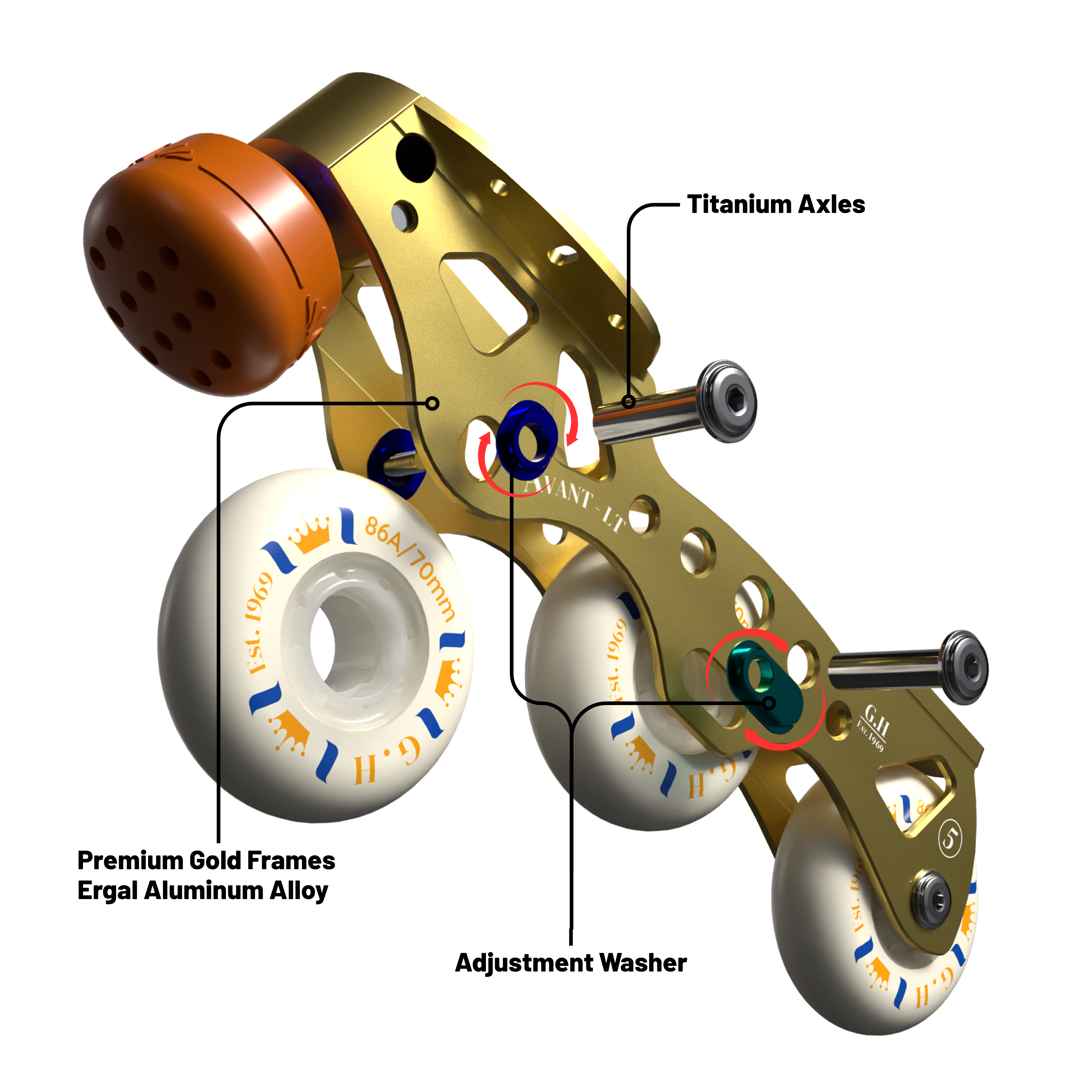 - 8 Inline Styles: GH's unique ring system allows you to adjust the direction of the wheels to create up to 8 different playing styles in just one frame.