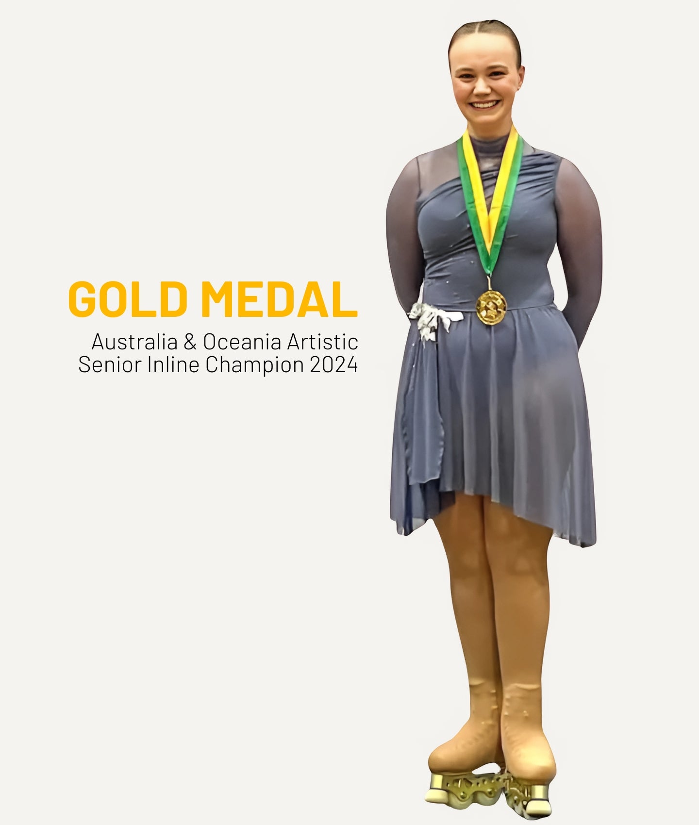 In the 2024 Australia & Oceania Artistic Senior Inline Champion. We were competing skater with GH Inline Maestro Boots and Avant LT Inline Frames (titanium axles).