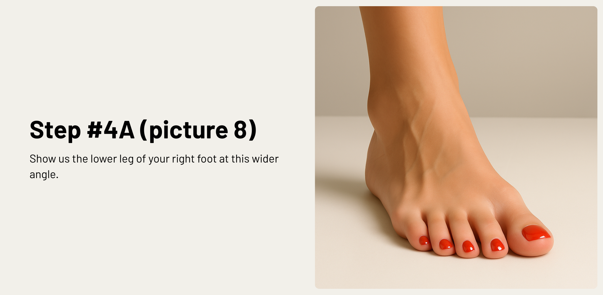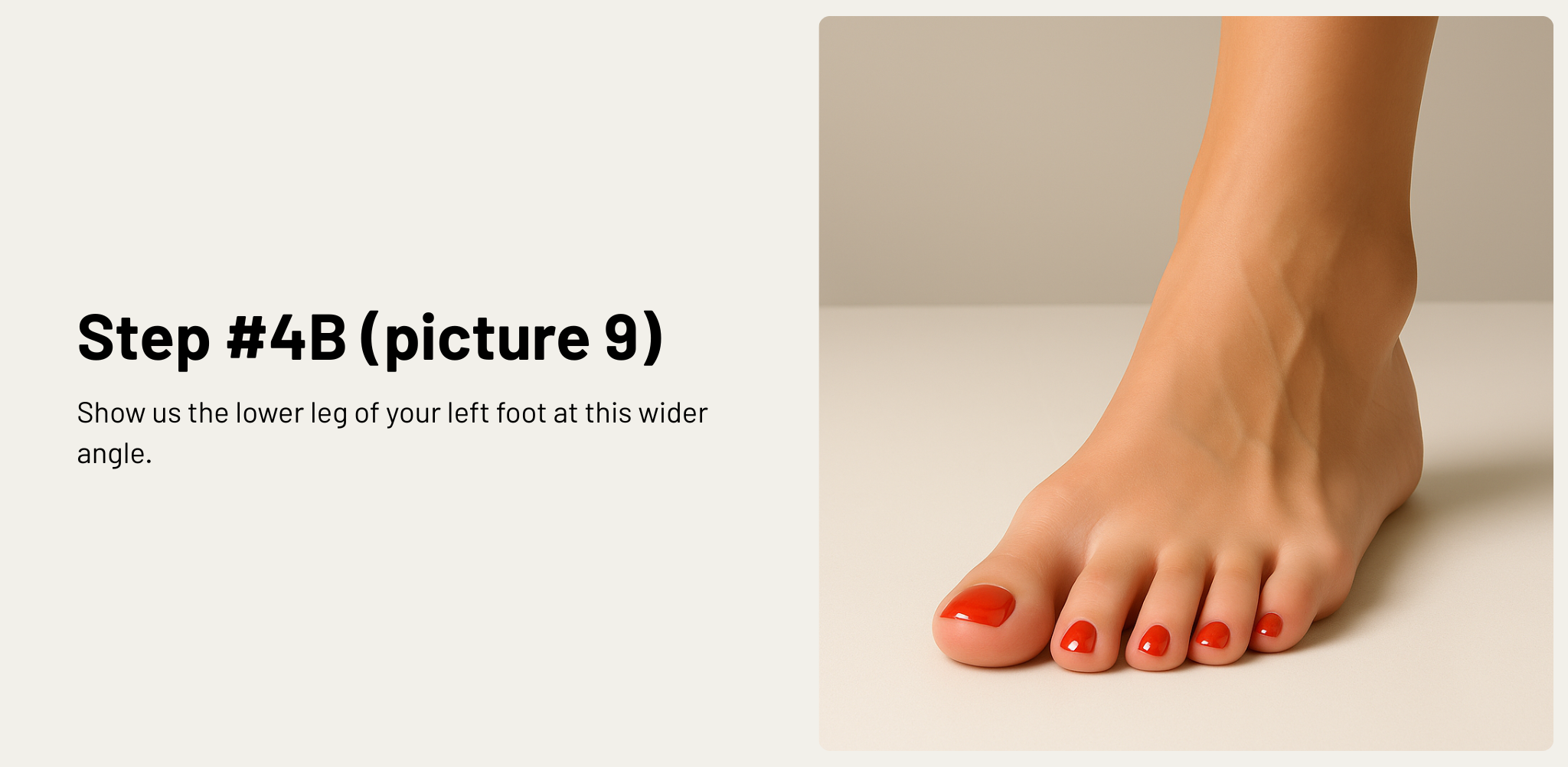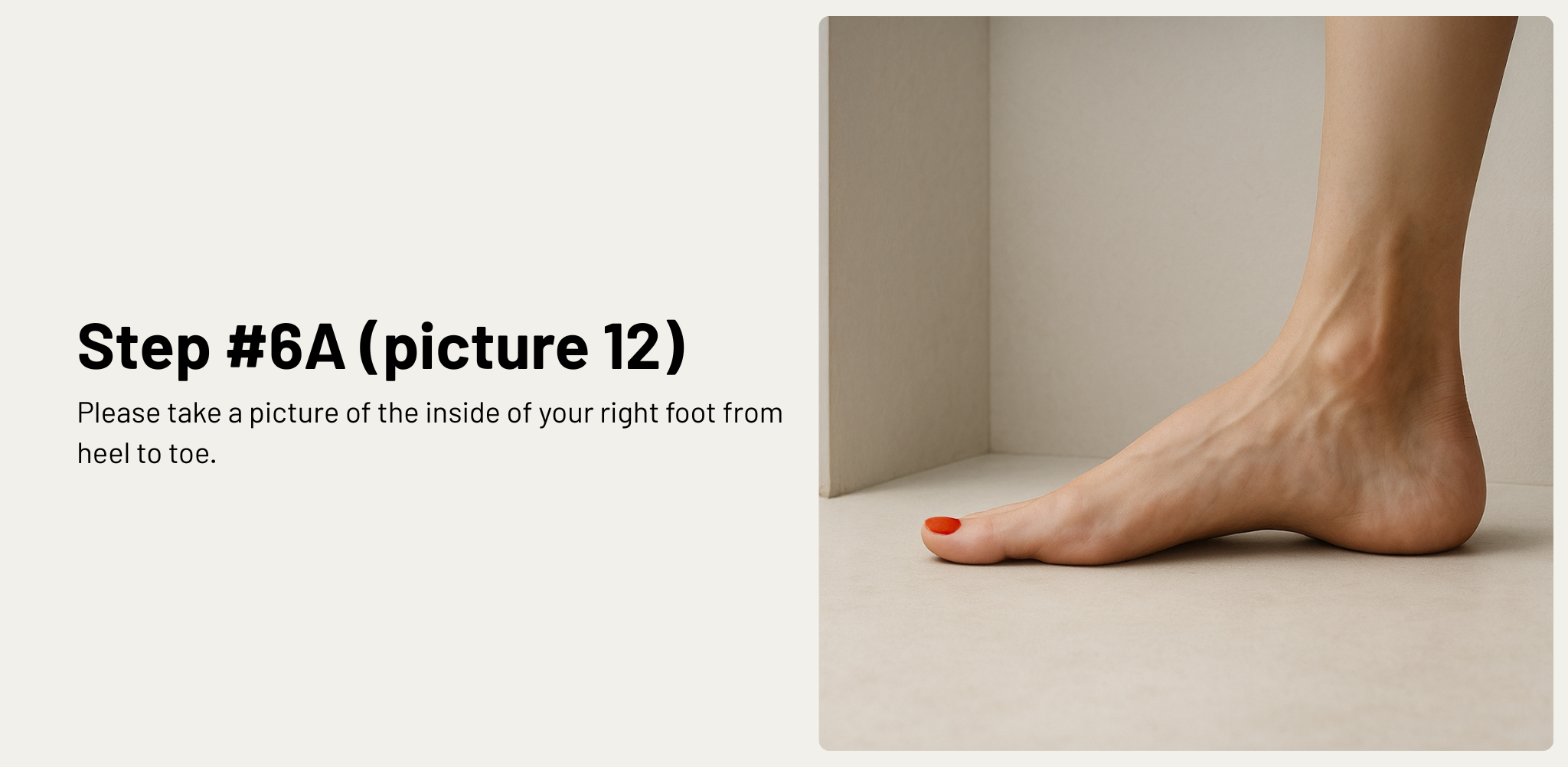 DISCLAIMER: Please be assured that we will not share these photographs with any external individuals. These images are being utilized solely for the accurate measurement of your boots to provide a customized fit.
