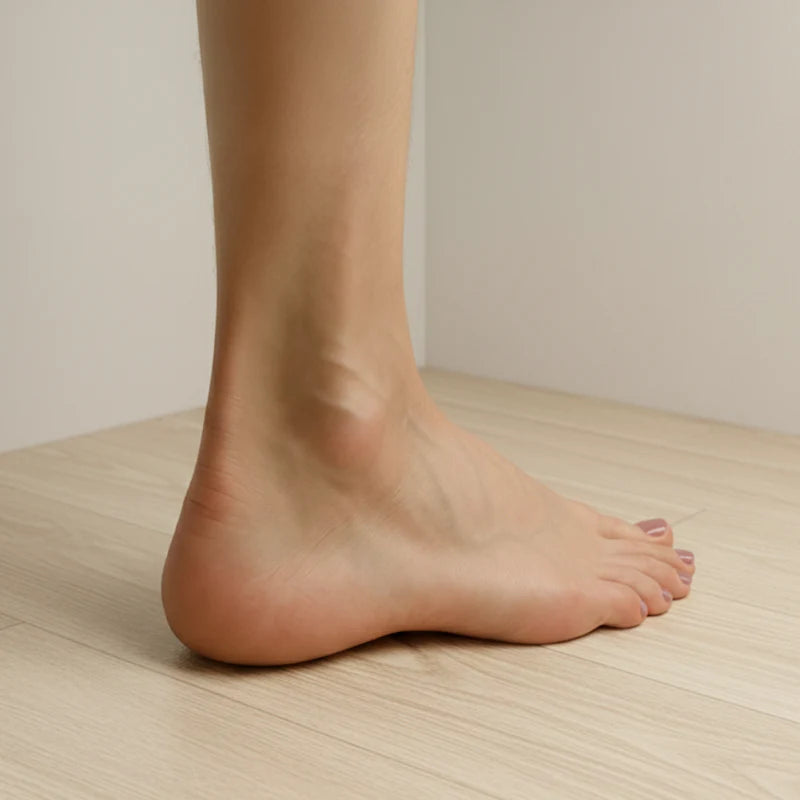 Please take a picture of The heel of your right foot at a 45 degree angle.