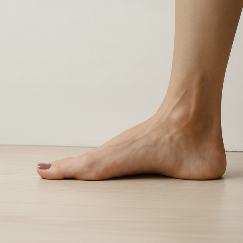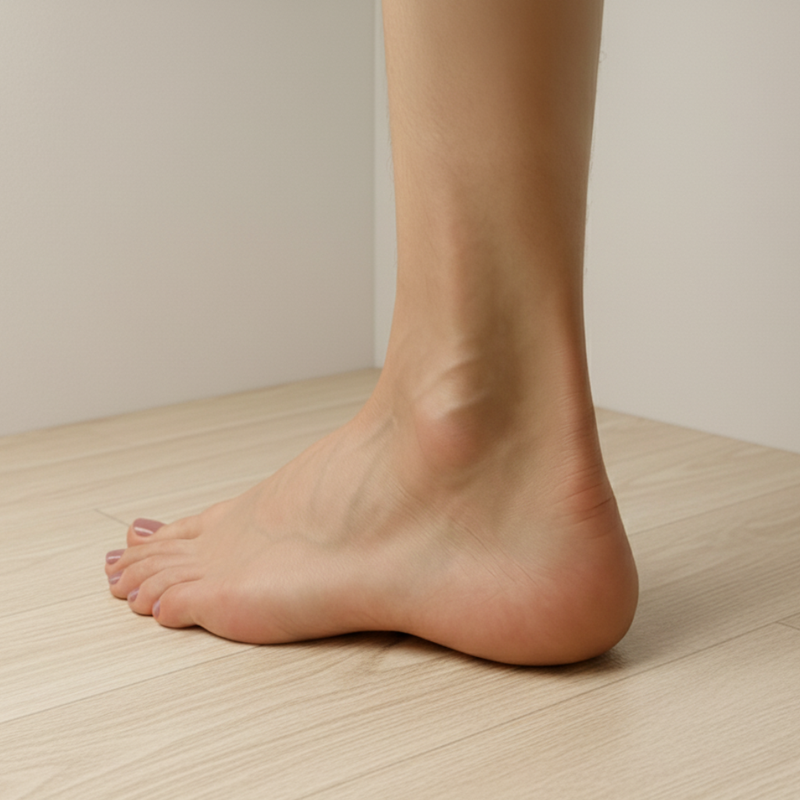 Please take a picture of The heel of your right foot at a 45 degree angle.