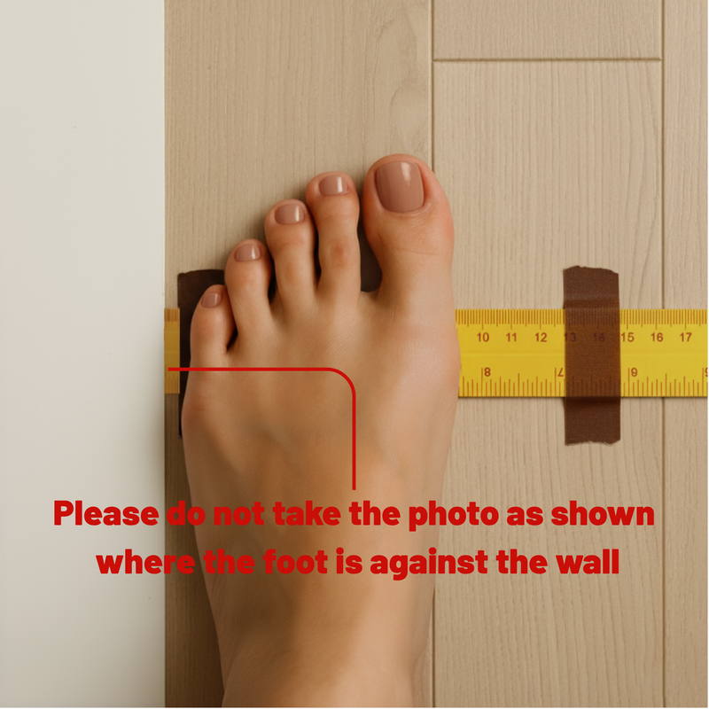 DISCLAIMER: Please be assured that we will not share these photographs with any external individuals. These images are being utilized solely for the accurate measurement of your boots to provide a customized fit.