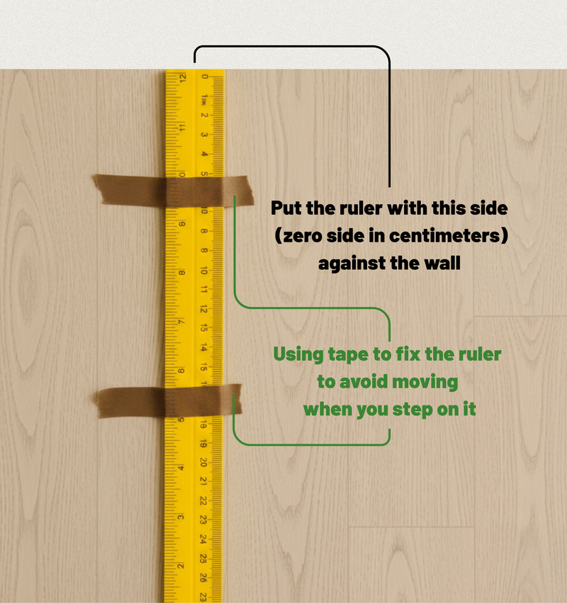- You must use tape to fix the ruler to avoid moving when you step on it.