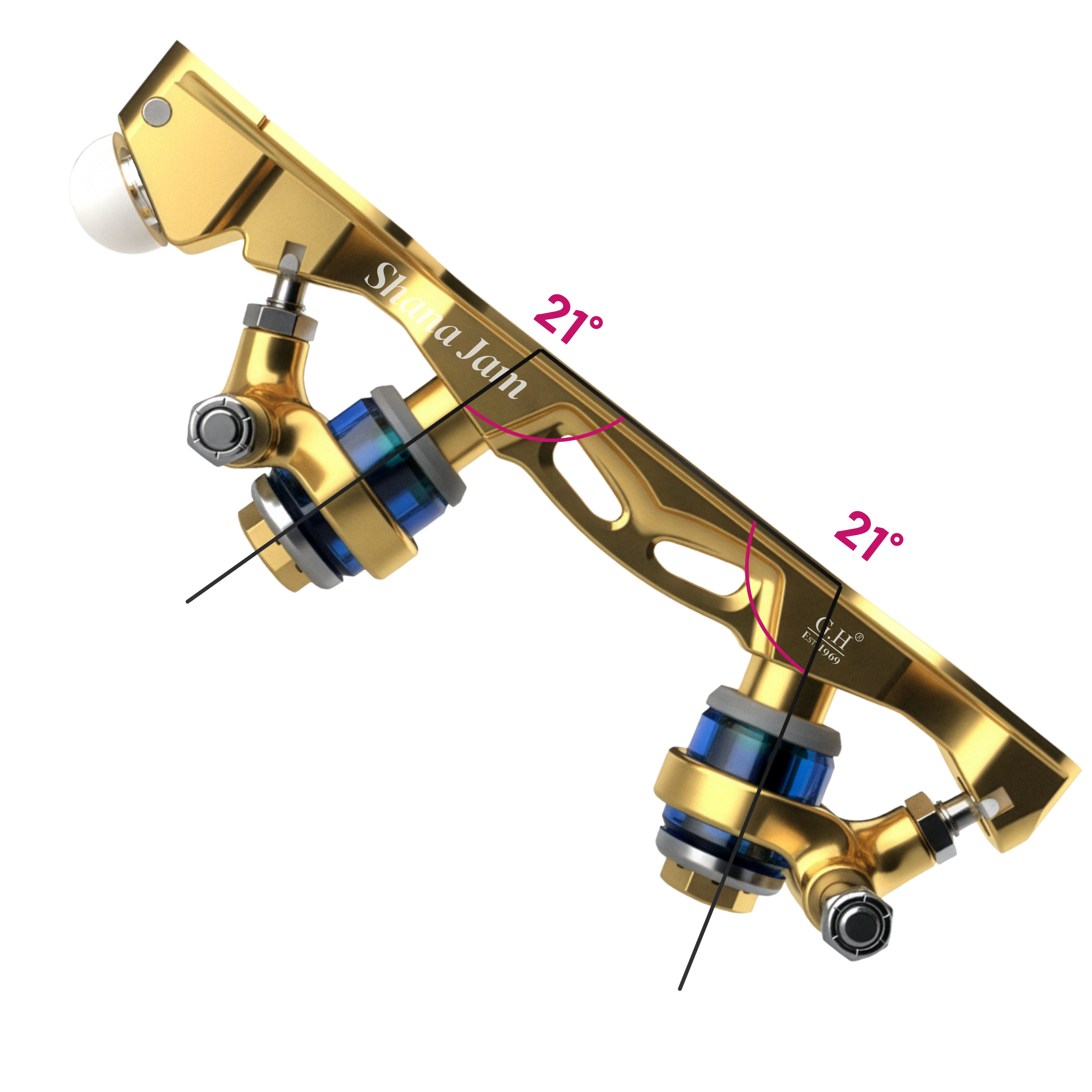 Stability is paramount to expression. Shana Jam achieves sublime balance with a 21° Kingpin Angle delivering swift changes in direction while maintaining the solid base required for powerful landings. Furthermore, by significantly lowering the deck profile compared to standard high-end plates, Shana Jam dramatically drops your center of gravity. The result Sharper control and a fluid, grounded dance experience, making every step feel closer to the floor.